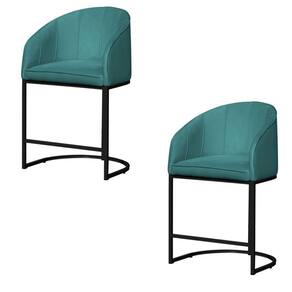 Kit 02 Banco Banqueta Poltrona Mia Base Metal Preta Veludo Cor:turquesa