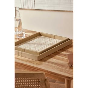 Kit 02 Bandejas Decorativas em MDF com Revestimento em PU Bege