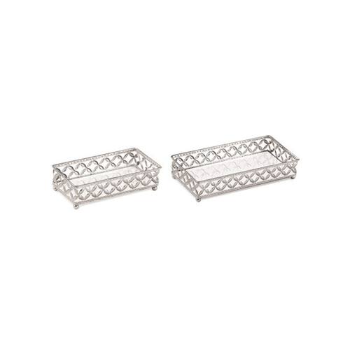 01 Kit com 02 Bandejas Decorativas em Metal Prata com Espelho.