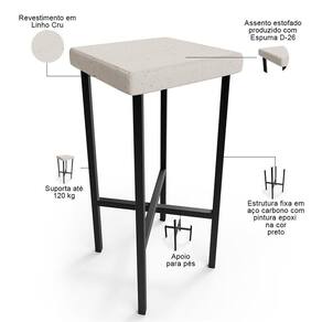 MaterialFamily: Aço carbono, Linho e espuma | ColorSimple: Cru | Model: Stella | Color: Cru | OriginCountry: Nacional | OriginState: PR | ProductContents: 02 Banquetas | ProductHeight: 73 cm | ProductInstructions: Produto para uso em ambiente interno, nao devendo ficar exposto ao sol, calor e umidade excessivos. | ProductLength: 35 cm | ProductWarranty: 90 dias após o recebimento do produto | ProductWeight: 10 kg | ProductWidth: 35 cm | SizeDescription: Altura: 73 cm x Largura: 35 cm x Profundidade: 35 cm | SupplierSimpleName: Kit 02 Banquetas Alta Bar Cozinha Sala De Jantar Preto Stella L02 Linho Cru - Lyam Decor | ColorFamily: Cru | ColorSupplier: Cru | Material: Estrutura em Aço carbono, Revestimento em Linho e espuma