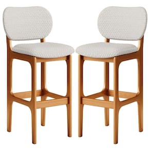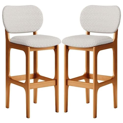 Amplamente sofisticada, o Kit 2 Banquetas Alta Para Cozinha Fixa Betta L02 Imbuia Bouclê Cru - Lyam Decor irá agregar ainda mais valor em sua decoração!! Sendo capaz de compor muito bem o ambiente, é produzida com materiais de excelente qualidade, a resistente estrutura em madeira de Taeda, na cor imbuia, conta com apoio para os pés (que garante maior segurança), além do assento e encosto estofados super confortáveis e convidativos, que são revestidos em tecido Bouclê, extremamente elegante.