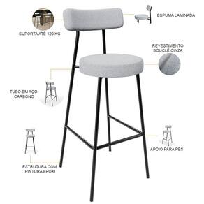 Amplamente moderna, dispondo de muito realce e design singular, O Kit 02 Banquetas Altas Bar Cozinha Sala De Jantar Estrutura Em Aço Milão L02 Bouclê Cinza - Lyam Decor vem com a personalidade e elegância que sua decoração merece! Estruturada em aço carbono, contrasta lindamente com o encosto e assento estofados, cabe mencionar ainda seu revestimento em Bouclê, é confeccionada por materiais de excelente qualidade, extremamente resistentes e aconchegantes.