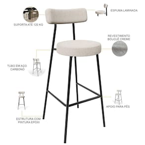 Amplamente moderna, dispondo de muito realce e design singular, O Kit 02 Banquetas Altas Bar Cozinha Sala De Jantar Estrutura Em Aço Milão L02 Bouclê Creme - Lyam Decor vem com a personalidade e elegância que sua decoração merece! Estruturada em aço carbono, contrasta lindamente com o encosto e assento estofados, cabe mencionar ainda seu revestimento em Bouclê, é confeccionada por materiais de excelente qualidade, extremamente resistentes e aconchegantes.