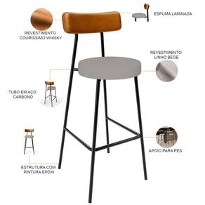 Amplamente moderna, dispondo de muito realce e design singular, o Kit 02 Banquetas Alta Cozinha Sala De Jantar Aço Milão L02 Couríssimo Whisky Linho Bege - Lyam Decor vem com a personalidade e elegância que sua decoração merece! Estruturada em aço carbono, contrasta lindamente com o encosto e assento estofados, cabe mencionar ainda o revestimento do seu encosto em Couríssimo e do assento em Linho, é confeccionada por materiais de excelente qualidade, extremamente resistentes e aconchegantes.