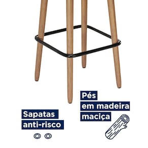 Os pés em madeira maciça contam com sapata anti risco, protegendo o piso e aumentando a vida útil da peça. Além disso, o arco em aço com pintura epóxi serve como apoio para os pés, trazendo ergonomia e completando o estilo único da banqueta.