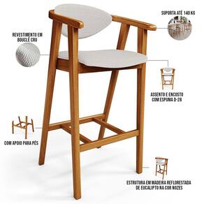A melhor escolha para os momentos de confraternização no aconchego da sua casa, acaba de chegar! O Kit 02 Banquetas Alta Para Cozinha Sala de Jantar Fixa Cecília L02 Bouclê Cru - Lyam vem com a personalidade e elegância que sua decoração merece! É ideal desde refeições rápidas, até um Happy Hour com os amigos, família. Seu design único valoriza o ambiente, sem deixar pra trás a beleza e qualidade! Para deixar a sua área gourmet mais aconchegante, ela possui assento e encosto estofados, confeccionados com materiais de excelente qualidade, e extremamente resistentes.