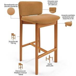 Cor: Mostarda | Material: Madeira e Espuma | ProductHeight: 83 cm | ProductInstructions: Produto para uso residencial em ambiente interno, não devendo ficar exposto diretamente ao sol, calo | Com estofado: Sim | MaterialFamily: Madeira e Espuma | OriginState: PR | Model: Banqueta Dara | ProductLength: 47 cm | SizeDescription: Altura: 83cm x Largura: 47cm x Profundidade: 47cm | Peso: 20 kg | Requer montagem: Não | Largura do assento: 45 cm | Diâmetro: na | ProductContents: 02 Banquetas | Estilo: Clássico | ProductWeight: 20 kg | Com rodas: Não | Quantidade de Caixas de embalagem: 1 | Desenho do tecido: Liso | É cadeira de balanço: Não | Altura do assento a partir do solo: 74 cm | Com apoio de braços: Não | Material do estofamento: Bouclê | É empilhável: Não | Cor da estrutura da cadeira: Castanho | Profundidade do assento: 37 cm | Tipo de produto: Banqueta | SupplierSimpleName: Kit 02 Banquetas Alta Para Cozinha Sala de Jantar Bar Dara L02 Bouclê Mostarda - Lyam Decor | Peso máximo suportado: 150 Kg | Com espaço de armazenamento: Não | Cor do assento: Mostarda | Profundidade da cadeira: 47 cm | Espessura do assento: na | OriginCountry: | Color: Mostarda | ProductWarranty: 90 dias após o do produto | ProductWidth: 47 cm | Largura: 47 cm | Cor do estofamento: Mostarda | É dobrável: Não | Fabricante: Lyam Decor | Altura da cadeira: 83 cm | Largura da cadeira: 47 cm