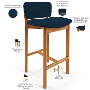 ProductLength: 47 cm | ProductWeight: 20 kg | Estilo: Clássico | Cor: Azul Marinho | OriginState: PR | ProductWarranty: 90 dias após o do produto | Com espaço de armazenamento: Não | Diâmetro: na | Material: Madeira e Espuma | ProductInstructions: Produto para uso residencial em ambiente interno, não devendo ficar exposto diretamente ao sol, calo | ProductWidth: 47 cm | Largura: 47 cm | É dobrável: Não | Fabricante: Lyam Decor | Desenho do tecido: Liso | Largura da cadeira: 47 cm | OriginCountry: | Model: Banqueta Dara | SizeDescription: Altura: 83cm x Largura: 47cm x Profundidade: 47cm | SupplierSimpleName: Kit 02 Banquetas Alta Para Cozinha Sala de Jantar Bar Dara L02 Suede Azul Marinho - Lyam Decor | Peso máximo suportado: 150 Kg | Quantidade de Caixas de embalagem: 1 | Material do estofamento: Suede | É cadeira de balanço: Não | Cor da estrutura da cadeira: Castanho | Profundidade do assento: 37 cm | MaterialFamily: Madeira e Espuma | ProductHeight: 83 cm | Tipo de produto: Banqueta | Com rodas: Não | Peso: 20 kg | ProductContents: 02 Banquetas | Color: Azul Marinho | Com estofado: Sim | Com apoio de braços: Não | Requer montagem: Não | Profundidade da cadeira: 47 cm | Cor do estofamento: Azul Marinho | Espessura do assento: na | É empilhável: Não | Cor do assento: Azul Marinho | Altura do assento a partir do solo: 74 cm | Largura do assento: 45 cm | Altura da cadeira: 83 cm