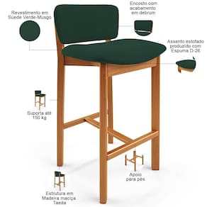 Requer montagem: Não | Diâmetro: na | Material: Madeira e Espuma | SizeDescription: Altura: 83cm x Largura: 47cm x Profundidade: 47cm | ProductContents: 02 Banquetas | MaterialFamily: Madeira e Espuma | Estilo: Clássico | ProductInstructions: Produto para uso residencial em ambiente interno, não devendo ficar exposto diretamente ao sol, calo | OriginCountry: | Cor: Verde Musgo | ProductWarranty: 90 dias após o do produto | Tipo de produto: Banqueta | Peso: 20 kg | Peso máximo suportado: 150 Kg | Desenho do tecido: Liso | Largura do assento: 45 cm | Espessura do assento: na | Com apoio de braços: Não | Largura: 47 cm | Cor do assento: Verde Musgo | É cadeira de balanço: Não | SupplierSimpleName: Kit 02 Banquetas Alta Para Cozinha Sala de Jantar Bar Dara L02 Suede Verde Musgo - Lyam Decor | Quantidade de Caixas de embalagem: 1 | Com rodas: Não | Color: Verde Musgo | OriginState: PR | ProductWidth: 47 cm | Com estofado: Sim | Com espaço de armazenamento: Não | Cor do estofamento: Verde Musgo | Altura da cadeira: 83 cm | Largura da cadeira: 47 cm | Cor da estrutura da cadeira: Castanho | É empilhável: Não | Altura do assento a partir do solo: 74 cm | Model: Banqueta Dara | ProductHeight: 83 cm | ProductLength: 47 cm | ProductWeight: 20 kg | Material do estofamento: Suede | É dobrável: Não | Profundidade da cadeira: 47 cm | Fabricante: Lyam Decor | Profundidade do assento: 37 cm