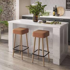 Kit 02 Banquetas Altas Atlanta Assento Quadrado Com Apoio Para Pés -Amarula - EdeCasaMoveis - Marrom