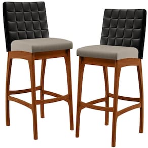 ndo muita excelência, o Kit 02 Banquetas Altas Cozinha Sala De Jantar Fixa Mila B04 Couríssimo Preto Linho Bege - Lyam Decor é o complemento que faltava para deixar sua casa ainda mais extraordinária. Seu encosto com costura em padrão quadriculado e assento estofados, centralizam em si uma graciosidade estonteante, sem perder todo o conforto. A estrutura em madeira, na cor nozes, também é digna de notoriedade, por imprimir bastante personalidade a sua decoração. Vale ressaltar ainda, o apoio para os pés que garante maior segurança à banqueta.