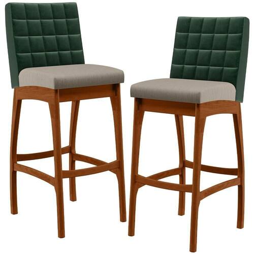 ndo muita excelência, o Kit 02 Banquetas Altas Cozinha Sala Jantar Fixa Mila B04 Facto Verde Musgo Linho Bege - Lyam Decor é o complemento que faltava para deixar sua casa ainda mais extraordinária. Seu encosto com costura em padrão quadriculado e assento estofados, centralizam em si uma graciosidade estonteante, sem perder todo o conforto. A estrutura em madeira, na cor nozes, também é digna de notoriedade, por imprimir bastante personalidade a sua decoração. Vale ressaltar ainda, o apoio para os pés que garante maior à banqueta.