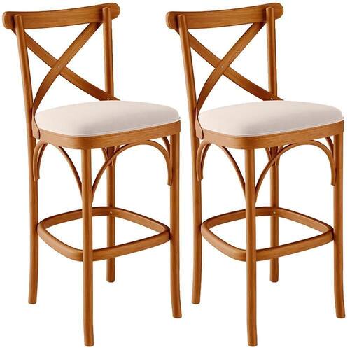 Kit 02 Banquetas Altas Cozinha Bancada Bar Sala De Jantar Estofada ávila L02 Suede Bege - Lyam