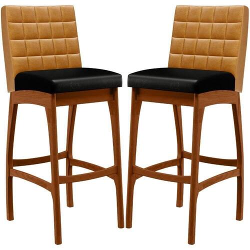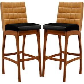 ndo muita excelência, o Kit 02 Banquetas Alta Para Cozinha Sala De Jantar Fixa Mila B04 Couríssimo Whisky Couríssimo Preto - Lyam Decor é o complemento que faltava para deixar sua casa ainda mais extraordinária. Seu encosto com costura em padrão quadriculado e assento estofados, centralizam em si uma graciosidade estonteante, sem perder todo o conforto. A estrutura em madeira, na cor nozes, também é digna de notoriedade, por imprimir bastante personalidade a sua decoração. Vale ressaltar ainda, o apoio para os pés que garante maior segurança à mesma.