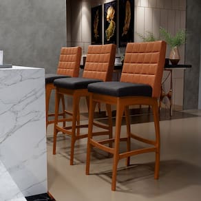 Entregando muita excelência, o Kit 02 Banquetas Altas Cozinha Sala Jantar Fixa Mila B04 Couríssimo Camel Linho Chumbo - Lyam Decor é o complemento que faltava para deixar sua casa ainda mais extraordinária. Seu encosto com costura em padrão quadriculado e assento estofados, centralizam em si uma graciosidade estonteante, sem perder todo o conforto. A estrutura em madeira, na cor nozes, também é digna de notoriedade, por imprimir bastante personalidade a sua decoração. Vale ressaltar ainda, o apoio para os pés que garante maior segurança à banqueta.