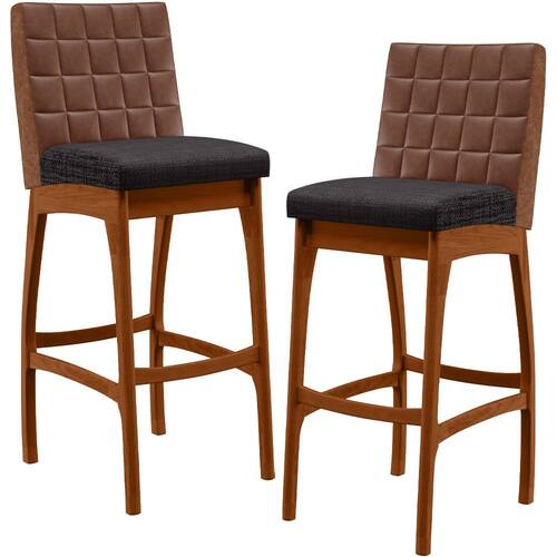 Entregando muita excelência, o Kit 02 Banquetas Altas Cozinha Sala Jantar Fixa Mila B04 Couríssimo Marrom Linho Chumbo - Lyam Decor é o complemento que faltava para deixar sua casa ainda mais extraordinária. Seu encosto com costura em padrão quadriculado e assento estofados, centralizam em si uma graciosidade estonteante, sem perder todo o conforto. A estrutura em madeira, na cor nozes, também é digna de notoriedade, por imprimir bastante personalidade a sua decoração. Vale ressaltar ainda, o apoio para os pés que garante maior segurança à banqueta.