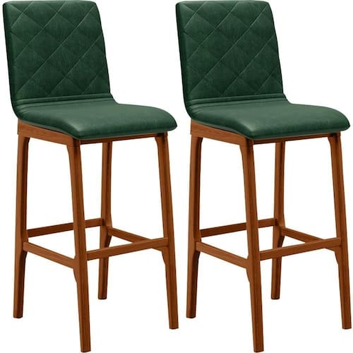 O complemento perfeito para o seu ambiente existe e está aqui! O Kit 02 Banquetas Altas Para Cozinha Sala de Jantar Fixa Zoe B04 Facto Verde Musgo - Lyam Decor vai ampliar totalmente a maneira como você compunha sua decoração, numa pegada clássica, com belíssima estrutura em madeira, na cor nozes, possui assento e encosto estofados super confortáveis e convidativos, além do apoio para os pés que garante maior segurança.