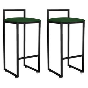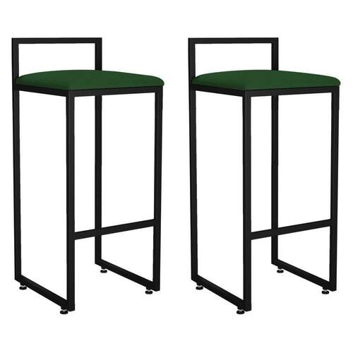 Kit 02 Banquetas Altas Para Cozinha Sala De Jantar Hanna L02 Preto Suede Verde Musgo - Lyam Decor