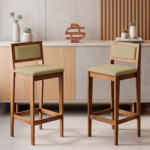 Produzida com estrutura em madeira, a Banqueta Lenna oferece excelente estabilidade e durabilidade no uso diário. O assento e encosto estofados proporcionam maior conforto ao sentar, tornando a experiência mais agradável em momentos de refeição, conversas ou encontros em bancada.