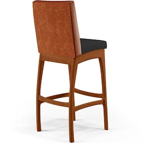 ndo muita excelência, o Kit 02 Banquetas Altas Cozinha Sala Jantar Fixa Mila B04 Couríssimo Camel Corano Preto - Lyam Decor é o complemento que faltava para deixar sua casa ainda mais extraordinária. Seu encosto com costura em padrão quadriculado e assento estofados, centralizam em si uma graciosidade estonteante, sem perder todo o conforto. A estrutura em madeira, na cor nozes, também é digna de notoriedade, por imprimir bastante personalidade a sua decoração. Vale ressaltar ainda, o apoio para os pés que garante maior segurança à banqueta.