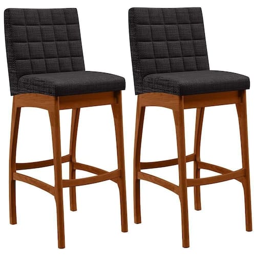 ndo muita excelência, o Kit 02 Banquetas Altas Para Cozinha Sala de Jantar Fixa Mila B04 Linho Chumbo - Lyam Decor é o complemento que faltava para deixar sua casa ainda mais extraordinária. Seu encosto com costura em padrão quadriculado e assento estofados, centralizam em si uma graciosidade estonteante, sem perder todo o seu conforto. A estrutura em madeira, na cor nozes, também é digna de notoriedade, por imprimir bastante personalidade a sua decoração. Vale ressaltar ainda, o apoio para os pés que garante maior segurança à mesma.