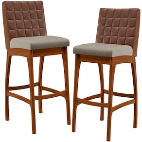 ndo muita excelência, o Kit 02 Banquetas Altas Cozinha Sala Jantar Fixa Mila B04 Couríssimo Marrom Linho Bege - Lyam Decor é o complemento que faltava para deixar sua casa ainda mais extraordinária. Seu encosto com costura em padrão quadriculado e assento estofados, centralizam em si uma graciosidade estonteante, sem perder todo o conforto. A estrutura em madeira, na cor nozes, também é digna de notoriedade, por imprimir bastante personalidade a sua decoração. Vale ressaltar ainda, o apoio para os pés que garante maior segurança à banqueta.