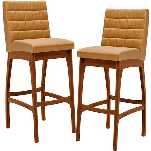 ndo muita excelência, o Kit 02 Banquetas Altas Para Cozinha Sala de Jantar Fixa Mila L02 Couríssimo Whisky - Lyam Decor é o complemento que faltava para deixar sua casa ainda mais extraordinária. Seu encosto com costura em padrão quadriculado e assento estofados, centralizam em si uma graciosidade estonteante, sem perder todo o conforto. A estrutura em madeira, na cor nozes, também é digna de notoriedade, por imprimir bastante personalidade a sua decoração. Vale ressaltar ainda, o apoio para os pés que garante maior à mesma.