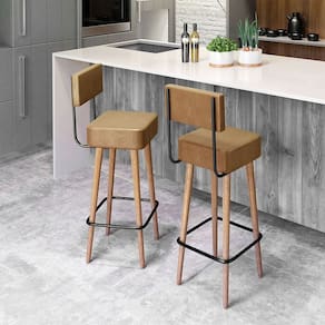 O Kit de 2 Banquetas Altas Montreuil da EdeCasaMoveis é perfeito para quem deseja funcionalidade com um toque moderno-industrial. Com altura de 96cm e assento redondo acolchoado disponível em couríssimo ou suede, essas banquetas são ideais para cozinhas e áreas de bar. A espuma de densidade D-28 no assento oferece conforto e resistência, enquanto a madeira de eucalipto seca e certificada garante durabilidade e preserva o meio ambiente.