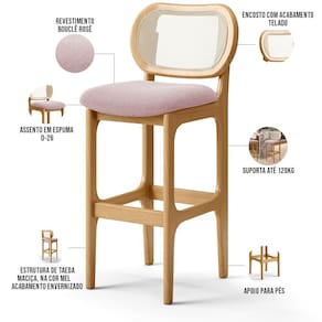 Amplamente sofisticada, a Banqueta Betta irá agregar ainda mais valor em sua decoração!! Sendo capaz de compor muito bem o ambiente, é produzida com materiais de excelente qualidade, a resistente estrutura em madeira de Taeda, na cor Mel, conta com apoio para os pés (que garante maior segurança), além do assento e encosto estofados super confortáveis e convidativos, que são revestidos em tecido Bouclê, extremamente elegante. Podendo ser disposta em bancada, cozinha americana, espaço gourmet ou home bar, as possibilidades de combinação são infinitas, o que a torna perfeita para receber família e amigos sempre de forma agradável e aconchegante, sem perder a sobriedade e requinte que possui. Você e seu lar merecem, adquira já a sua!!