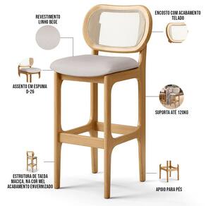 Amplamente sofisticada, a Banqueta Betta irá agregar ainda mais valor em sua decoração!! Sendo capaz de compor muito bem o ambiente, é produzida com materiais de excelente qualidade, a resistente estrutura em madeira de Taeda, na cor Mel, conta com apoio para os pés (que garante maior segurança), além do assento e encosto estofados super confortáveis e convidativos, que são revestidos em tecido Linho, extremamente elegante. Podendo ser disposta em bancada, cozinha americana, espaço gourmet ou home bar, as possibilidades de combinação são infinitas, o que a torna perfeita para receber família e amigos sempre de forma agradável e aconchegante, sem perder a sobriedade e requinte que possui. Você e seu lar merecem, adquira já a sua!!