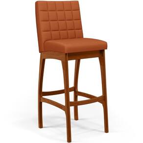 ndo muita excelência, o Kit 02 Banquetas Altas Para Cozinha Sala De Jantar Fixa Mila B04 Tecido Terracota - Lyam Decor é o complemento que faltava para deixar sua casa ainda mais extraordinária. Seu encosto com costura em padrão quadriculado e assento estofados, centralizam em si uma graciosidade estonteante, sem perder todo o conforto. A estrutura em madeira, na cor nozes, também é digna de notoriedade, por imprimir bastante personalidade a sua decoração. Vale ressaltar ainda, o apoio para os pés que garante maior à mesma. Pode ser acomodado em cozinha americana, ambientes integrados, espaços gourmets, bancadas ou em seu home bar, independente do lugar, desperta logo de cara bastante elegância e deixa tudo mais despojado, perfeita para criar um ambiente harmonioso e agradável para receber a família e amigos, quando favorável. Não perca tempo e adquira já a sua!!