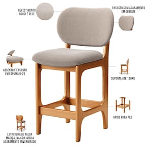 Amplamente sofisticada, a Banqueta Baixa Bar Cozinha Sala Jantar Betta L02 Base Imbuia da Lyam Decor, irá agregar ainda mais valor em sua decoração!! Sendo capaz de compor muito bem o ambiente, é produzida com materiais de excelente qualidade, a resistente estrutura em madeira de Taeda, na cor Imbuia, conta com apoio para os pés (que garante maior segurança), além do assento e encosto estofados super confortáveis e convidativos, que são revestidos em tecido de alta qualidade, composição extremamente elegante.