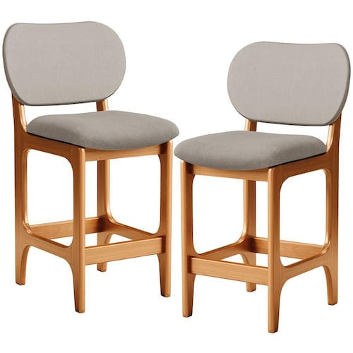 Amplamente sofisticada, o Kit 02 Banquetas Baixa Bar Cozinha Sala Jantar Betta L02 Imbuia Linho Bege - Lyam Decor irá agregar ainda mais valor em sua decoração!! Sendo capaz de compor muito bem o ambiente, é produzida com materiais de excelente qualidade, a resistente estrutura em madeira de Taeda, na cor imbuia, conta com apoio para os pés (que garante maior segurança), além do assento e encosto estofados super confortáveis e convidativos, que são revestidos em tecido Couríssimo, composição extremamente elegante.
