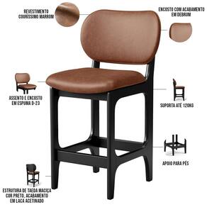 Amplamente sofisticada, o Kit 02 Banquetas Baixa Bar Cozinha Sala Jantar Betta L02 Couríssimo Marrom - Lyam Decor irá agregar ainda mais valor em sua decoração!! Sendo capaz de compor muito bem o ambiente, é produzida com materiais de excelente qualidade, a resistente estrutura em madeira de Taeda, na cor Preto, conta com apoio para os pés (que garante maior segurança), além do assento e encosto estofados super confortáveis e convidativos, que são revestidos em tecido Couríssimo, composição extremamente elegante.