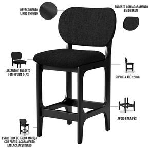 Amplamente sofisticada, o Kit 02 Banquetas Baixa Bar Cozinha Sala Jantar Betta L02 Linho Chumbo - Lyam Decor irá agregar ainda mais valor em sua decoração!! Sendo capaz de compor muito bem o ambiente, é produzida com materiais de excelente qualidade, a resistente estrutura em madeira de Taeda, na cor Preto, conta com apoio para os pés (que garante maior segurança), além do assento e encosto estofados super confortáveis e convidativos, que são revestidos em tecido Couríssimo, composição extremamente elegante.