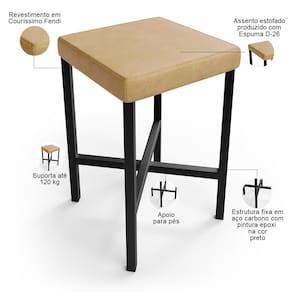 Color: Bege | ColorFamily: Bege | ColorSimple: Bege | ColorSupplier: Fendi | Material: Estrutura de aço carbono, Revestimento em Couríssimo e espuma | MaterialFamily: Aço carbono, couro sintético e espuma | Model: Stella | OriginCountry: Nacional | OriginState: PR | ProductContents: 02 Banquetas | ProductHeight: 49 cm | ProductInstructions: Produto para uso em ambiente interno, nao devendo ficar exposto ao sol, calor e umidade excessivos. | ProductLength: 37 cm | ProductWarranty: 90 dias após o recebimento do produto | ProductWeight: 8 kg | ProductWidth: 39 cm | SizeDescription: Altura: 49 cm x Largura: 39 cm x Profundidade: 37 cm | SupplierSimpleName: Kit 02 Banquetas Baixa Bar Cozinha Sala De Jantar Preto Stella L02 Couríssimo Fendi - Lyam Decor