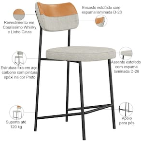 Para você que busca conforto, realce e praticidade, o Kit 02 Banquetas Baixa Estofada Elira vai superar todas as suas expectativas! Garante muita comodidade e otimiza o espaço, além de harmonizar com seu estilo decorativo facilmente, podendo ser utilizada em bancadas, cozinha americana, espaço gourmet ou home bar, trazendo um toque especial em sua decoração. Sua proposta de design suavizará seu ambiente sem passar despercebida oferecendo mais leveza e receptividade ao seu lar. Estruturada em aço carbono, contrasta lindamente com o encosto e assento estofados que são extremamente confortáveis, resistentes e aconchegantes. Você merece esta incrível combinação em sua casa, adquira já a sua!