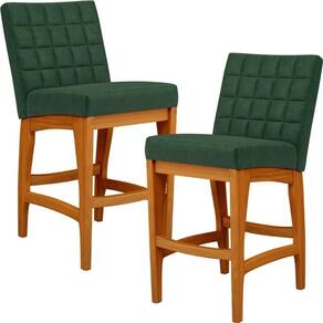 ndo muita excelência, o Kit 02 Banquetas Baixas Para Cozinha Bancada Bar Sala De Jantar 90 cm Fixa Mila L02 Facto Verde Musgo - Lyam Decor é o complemento que faltava para deixar sua casa ainda mais extraordinária. Seu encosto com costura em padrão quadriculado e assento estofados, centralizam em si uma graciosidade estonteante, sem perder todo o seu conforto. A estrutura em madeira, na cor nozes, também é digna de notoriedade, por imprimir bastante personalidade a sua decoração. Vale ressaltar ainda, o apoio para os pés que garante maior à mesma.