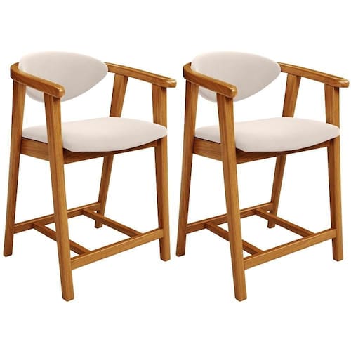 Esse kit de banquetas combina design moderno e funcionalidade, já que é ideal para cozinha, sala de jantar, bancada ou área gourmet. Além disso, são feitas com madeira de eucalipto vermelho tratado, o que garante durabilidade e sustentabilidade. Já o assento e encosto estofados com espuma de alta densidade proporcionam máximo conforto durante suas refeições ou momentos de descontração.