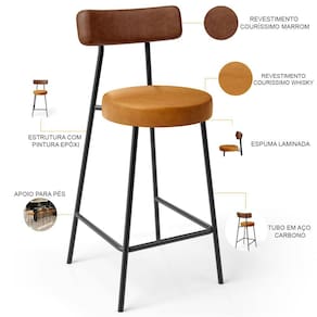 Amplamente moderna, dispondo de muito realce e design singular, o Kit 02 Banquetas Baixa Para Cozinha Sala De Jantar Bar Bancada Milão L02 Couríssimo Marrom Couríssimo Whisky - Lyam Decor vem com a personalidade e elegância que sua decoração merece! Estruturada em aço carbono, contrasta lindamente com o encosto e assento estofados, cabe mencionar ainda seu revestimento em Couríssimo, é confeccionada por materiais de excelente qualidade, extremamente resistentes e aconchegantes.