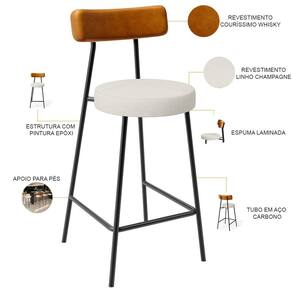 Amplamente moderna, dispondo de muito realce e design singular, o Kit 02 Banquetas Baixa Para Cozinha Sala De Jantar Bar Bancada Milão L02 Couríssimo Whisky Linho Champagne - Lyam Decor vem com a personalidade e elegância que sua decoração merece! Estruturada em aço carbono, contrasta lindamente com o encosto e assento estofados, cabe mencionar ainda seu revestimento em Couríssimo, é confeccionada por materiais de excelente qualidade, extremamente resistentes e aconchegantes.