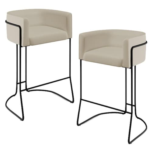 O Kit 02 Banquetas Decorativas Fixa Base de Aço Preto Betina D02 Corano Bege C-26 - Lyam Decor exala formosura e elegância! Excelente opção para dispor em sua sala de estar, sala de jantar, em cozinha americana e até mesmo área gourmet. Seu protagonismo é notório, sem sombra de dúvidas é perfeita para qualquer ambientação que desejar colocá-la.
