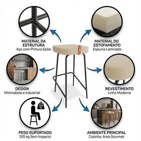 Tipo de Produto: Banqueta Média, Banqueta Gourmet, Banco Estofado