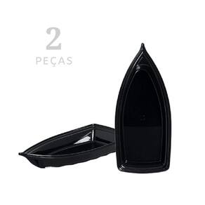 Kit 02 Barca Barco para Açaí Sushi Sashimi Bandeja 22 Preto