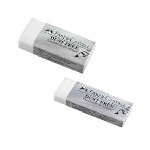 A série Faber-Castell Dust-Free eraser oferece o melhor desempenho em apagamento limpo. Também não contém plastificante nocivo - Phthalate. A fórmula única "Dust-Free" torna o apagador macio e garante um excelente apagamento limpo e sem manchas. O resíduo e o pó do apagador se enrolam facilmente para facilitar a limpeza. A borda de conforto (cantos chanfrados) é trabalhada com cuidado para um apagamento preciso e para evitar quebras. Além disso, as borrachas são livres de látex e dermatologicamente testadas e aprovadas.