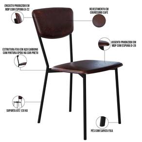 Color: Marrom | ColorFamily: Marrom | ColorSimple: Marrom | ColorSupplier: Café | Material: Estrutura em Aço, MDP, Revestimento em Couro sintético e espuma | MaterialFamily: Aço, MDP, Couro sintético e espuma | Model: Village | OriginCountry: Brasil | OriginState: PR | ProductContents: 02 Cadeiras | ProductHeight: 166 cm | ProductInstructions: Produto para uso em ambiente interno, nao devendo ficar exposto ao sol, calor e umidade excessivos. | ProductLength: 53 cm | ProductWarranty: 90 dias após o recebimento do produto | ProductWeight: 13 kg | ProductWidth: 43 cm | SizeDescription: Altura: 166 cm x Largura: 43 cm x Profundidade: 53cm | SupplierSimpleName: Kit 02 Cadeira Para Sala de Jantar Village Preto C01 Courino Café - Lyam Decor