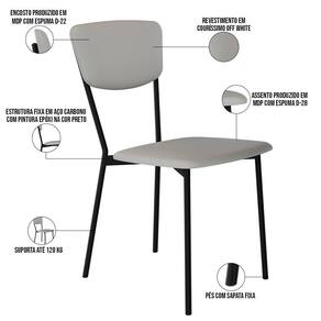 Color: OFF WHITE | ColorFamily: Off White | ColorSimple: Off White | ColorSupplier: Off White | Material: Estrutura em Aço, MDP, Revestimento em Couro sintético e espuma | MaterialFamily: Aço, MDP, Couro sintético e espuma | Model: Village | OriginCountry: Brasil | OriginState: PR | ProductContents: 02 Cadeiras | ProductHeight: 166 cm | ProductInstructions: Produto para uso em ambiente interno, nao devendo ficar exposto ao sol, calor e umidade excessivos. | ProductLength: 53 cm | ProductWarranty: 90 dias após o recebimento do produto | ProductWeight: 13 kg | ProductWidth: 43 cm | SizeDescription: Altura: 166 cm x Largura: 43 cm x Profundidade: 53cm | SupplierSimpleName: Kit 02 Cadeira Para Sala de Jantar Village Preto C01 Courino Off White - Lyam Decor