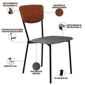 Color: Caramelo | ColorFamily: Caramelo | ColorSimple: Caramelo | ColorSupplier: Caramelo | Material: Estrutura em Aço, MDP, Revestimento em Linho, Couro sintético e espuma | MaterialFamily: Aço, MDP, Linho, Couro sintético e espuma | Model: Village | OriginCountry: Brasil | OriginState: PR | ProductContents: 02 Cadeiras | ProductHeight: 166 cm | ProductInstructions: Produto para uso em ambiente interno, nao devendo ficar exposto ao sol, calor e umidade excessivos. | ProductLength: 53 cm | ProductWarranty: 90 dias após o recebimento do produto | ProductWeight: 13 kg | ProductWidth: 43 cm | SizeDescription: Altura: 166 cm x Largura: 43 cm x Profundidade: 53cm | SupplierSimpleName: Kit 02 Cadeira Para Sala de Jantar Village Preto C01 Linho Prata Courino Caramelo - Lyam Decor