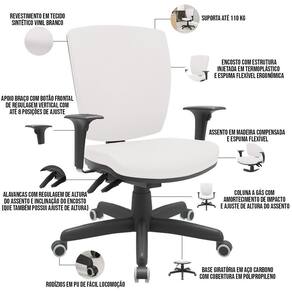 O Kit 02 Cadeiras Diretor Giratória Flexi , é uma opção robusta e elegante para um ambiente de trabalho confortável. Essa cadeira combina elementos de design moderno e materiais duráveis para oferecer suporte ergonômico e resistência ao uso diário. Projetada para uso em ambientes de trabalho, essas cadeiras são conhecidas por sua estabilidade e durabilidade. O encosto alto e assento estofado são características importantes dessa cadeira, pois fornecem apoio e conforto adicional para a lombar e ajudam a manter uma postura correta durante o período de ofício, é uma escolha funcional e esteticamente agradável para um ambiente de trabalho. Com seu design ergonômico, materiais resistentes e conforto adicional, essa cadeira oferece suporte adequado e durabilidade para enfrentar as demandas evitando assim o desconforto e fadiga ao longo do dia a dia no escritório. Além disso, apresenta recursos como altura ajustável, braços com regulagem vertical e rodízios para facilitar a movimentação ao redor do escritório. Adquira mais conforto para suas horas de trabalho! Dimensões do produto (L x A x P) 64 cm x 96 cm x 56 cm Medidas internas: Profundidade assento: 38 cm Largura assento: 49 cm Altura encosto: 52 cm Altura do chão ao assento: 44,4 cm Largura do encosto: 48,5 cm Características: Cadeira diretor, encosto com estrutura injetada em termoplástico. Apoio para braço com botão frontal de regulagem vertical, com até 8 posições de ajuste. Assento em madeira compensada e estofado em espuma ível, com coluna a gás e amortecimento de impacto. Possui alavancas de regulagem de altura do assento e inclinação do encosto. Revestimento em Vinil na cor Branco. Base giratória em Aço de Carbono com cobertura em polipropileno. Rodízios em PU de fácil locomoção. Possui certificado de Laudo Ergonômico. Suporta até 110 kg. - Por se tratar de estofado as medidas podem ter uma pequena variação de até 3 cm. - A tonalidade do produto real poderá ter ligeira variação devido o lote de tecidos. Observações importantes: - A montagem será de responsabilidade do comprador; - Responsabilizamo-nos pela em todo território , até onde as rodovias alcançam, fluviais ou aéreas devem ser cotadas a parte; - Não nos responsabilizamos, no ato da , por subir escadas/elevadores ou por guincho em apartamentos. - Eventuais despesas são de responsabilidade do comprador; - Confira as dimensões do produto e certifique-se de que passará normalmente por supostos elevadores, portas, escadas e/ou corredores de sua residência; ProductInstructions: Produto para uso em ambiente interno, nao devendo ficar exposto ao sol, calor e umidade excessivos. | ProductContents: 02 Cadeiras de Escritório | ProductLength: 67 cm | OriginCountry: | ProductHeight: 97 cm | ColorFamily: Branco | ColorSimple: Branco | OriginState: PR | ColorSupplier: Branco | Material: Madeira, espuma | Color: Branco | ProductWidth: 65 cm | SizeDescription: Altura: 97 cm Largura: 65 cm Profundidade: 67 cm | ProductWarranty: 90 dias após o do produto | ProductWeight: 20 kg | SupplierSimpleName: Kit 02 Cadeiras de Escritório Diretor Office Giratória Preto Alta Flexi P03 Vinil Branco - Lyam | MaterialFamily: Madeira | Model: Flexi | Cor: Branco
