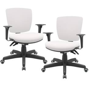 Kit 02 Cadeiras De Escritório Executiva Office Giratória Preto Baixa Flexi P03 Vinil Branco - Lyam